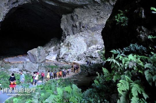 國家旅游地理 廣西河池8月17日訊 游客在廣西河池市鳳山縣三門海景區(qū)游覽壽河源(8月15日攝)。炎炎盛夏,在巖洞里享受別樣清涼,成為越來越多游客的首選。在持續(xù)高溫的助推下,廣西各地巖洞的游客流快速增長,呈現(xiàn)不斷升溫趨勢。 /新華社記者 周華攝