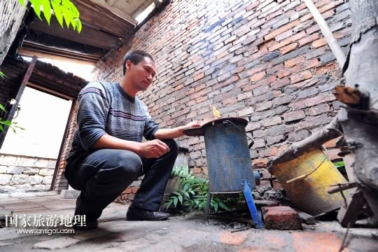 國(guó)家旅游地理 寧夏石嘴山9月6日訊 在寧夏回族自治區(qū)石嘴山市大武口區(qū)人民街道工人街社區(qū)的原洗煤廠(chǎng)老舊小區(qū)內(nèi),46歲的馬連生在院子里生火準(zhǔn)備燒開(kāi)水。他在這里已經(jīng)居住了14年(9月3日攝)。