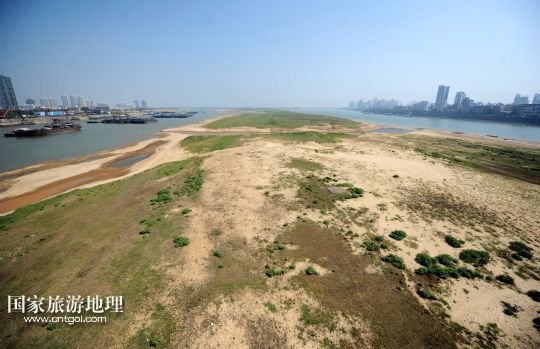 9月20日,因水位下降,贛江南昌段江中心出現(xiàn)大面積裸露的沙洲。