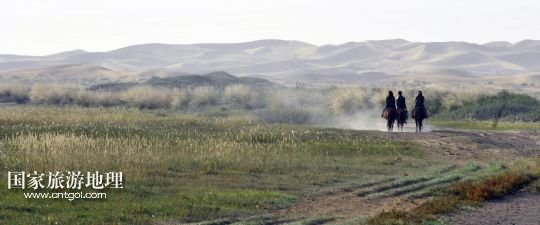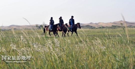 國家旅游地理 內蒙古阿拉善9月29日訊 9月28日,游客在通湖草原景區(qū)騎馬。通湖草原景區(qū)位于內蒙古和寧夏交界的騰格里沙漠腹地,景區(qū)匯集了沙漠、草原和湖泊,自然景觀獨特,吸引了眾多秋游的游客。 /新華社發(fā)(劉玉和 攝)