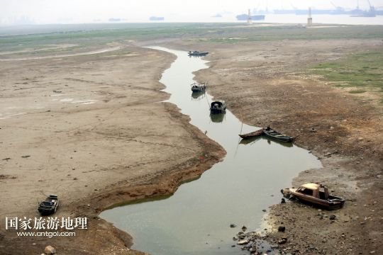 國家旅游地理 江西九江10月19日訊 10月19日,大批船只??吭诘退坏嫩蛾柡鞫疾俏鞲劭凇.斎?,我國最大淡水湖鄱陽湖跌破10米的枯水位大關(guān),提前進入枯水期,這將對鄱陽湖濕地植被生長以及候鳥與野生魚類越冬造成影響。江西省水文局負責人介紹,星子站水位在10米以下就意味著鄱陽湖進入枯水期。受近期江西境內(nèi)降雨偏少、入湖水量減少等因素影響,19日10時,鄱陽湖星子站水位跌至9.98米,比同期多年均值偏低約4米。