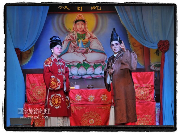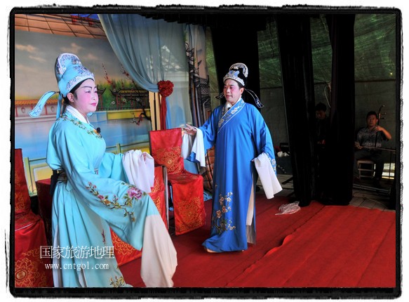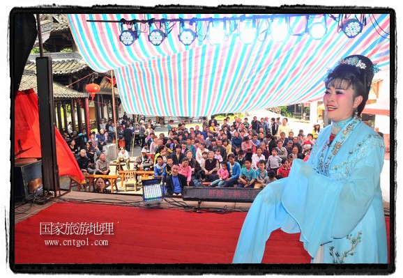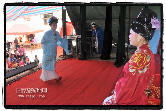 江西省婺源縣賦春鎮(zhèn)源頭村景區(qū)邀請了安徽黃梅戲劇團(tuán)在村門口為村民表演輪翻上演黃梅戲
