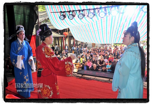國家旅游地理 江西上饒5月1日訊(特約記者 王國紅攝影報(bào)道)5月1日,婺源縣賦春鎮(zhèn)源頭村景區(qū),村民和游客在景區(qū)村口圍觀觀看安徽黃梅戲《婆媳情》。“五一”小長假期間,江西省婺源縣賦春鎮(zhèn)源頭村景區(qū)邀請了安徽黃梅戲劇團(tuán)在村門口為村民表演輪翻上演黃梅戲,讓老百姓足不出戶就可以享受到豐富的文化大餐,促進(jìn)了農(nóng)村精神文明建設(shè),受到群眾的廣泛歡迎,讓大家歡快過上“五一”勞動(dòng)節(jié)。