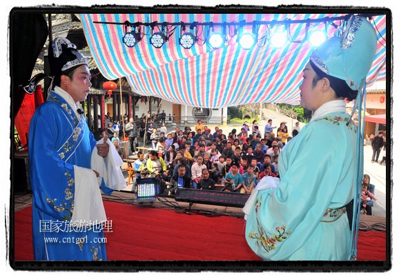 江西省婺源縣賦春鎮(zhèn)源頭村景區(qū)邀請了安徽黃梅戲劇團(tuán)在村門口為村民表演輪翻上演黃梅戲】