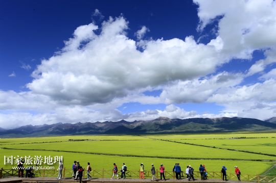 7月22日,游客在門源油菜花田的觀花臺(tái)上觀賞。