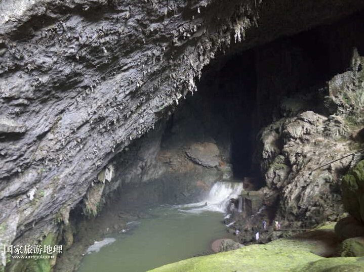 這是羅甸縣的大小井風(fēng)景區(qū)的響水洞天坑,典型的喀斯特地貌景觀。這個(gè)天坑位于大井出水口西側(cè)大約200米處,坑口高500米,寬500,深200米。內(nèi)有暗河,水聲轟鳴,在坑外十里處都可以清晰聽(tīng)到,故稱為響水洞天坑坑口寬敞明亮,暗河奔流,水花飛揚(yáng),氣勢(shì)磅礴,蔚然壯觀??觾?nèi)巨大的鐘乳石如寶劍懸掛在墻壁上,有的錯(cuò)落城橋,有的如猛虎下山,千姿百態(tài),美不勝收。