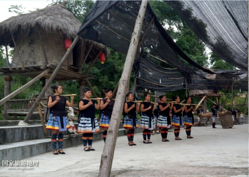 這是黔南荔波縣瑤寨姑娘在表演舞蹈。荔波瑤山白褲瑤是一個(gè)歷史悠久的古老民族,是一支長(zhǎng)期深居高山密林,過(guò)著刀耕火種,自給自足的封閉式狩獵民族,至今仍保存著母系氏族社會(huì)向父系氏族社會(huì)過(guò)渡的遠(yuǎn)古遺風(fēng),因其民族文化保存最完整而被聯(lián)合國(guó)科教文衛(wèi)組織賜予“人類文明的活化石”之稱。又因其崇拜太陽(yáng)神,信奉百神靈,圖騰與遠(yuǎn)在大洋彼岸的印第安人極為相似而被外界稱為“東方印第安人”。