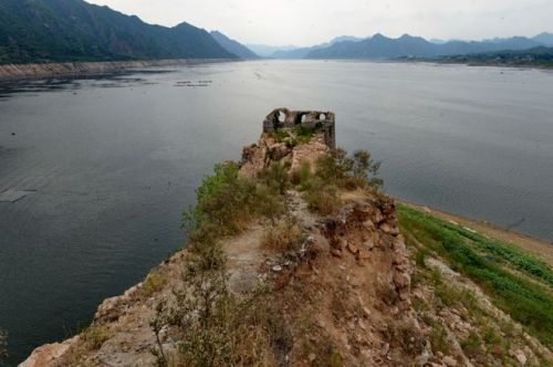 2015年7月16日,河北潘家口水庫(kù)旁的喜峰口長(zhǎng)城墻體塌方嚴(yán)重。新華社記者牟宇 攝