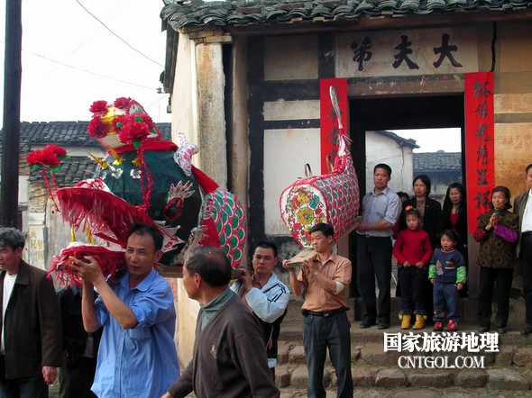 2月18日入夜,春雨霏霏。在光裕堂祖祠祭龍頭畢,鄒姓村民紛紛肩抬慶燈到祖祠接成220多米長(zhǎng)的“龍”身。三聲銃響,游龍時(shí)而在村間慢悠游弋,時(shí)而在村道滯拔狂走,火紅的燭光伴著霏霏春雨,讓?xiě)c燈“龍”絢麗多姿,展示了“紙包火”的奇跡。 游“龍”所經(jīng)之處,鞭炮和禮花聲不絕于耳,祈求五谷豐登、吉祥如意。街巷人山人海,熱鬧非凡,一派花燈游龍慶豐收狂歡鬧元宵盛況。 吸引了海內(nèi)外游客及四鄰八鄉(xiāng)的萬(wàn)余群眾紛紛前往觀看。
