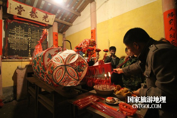 村民在光裕堂祖祠祭“龍”頭。鄒善水 攝